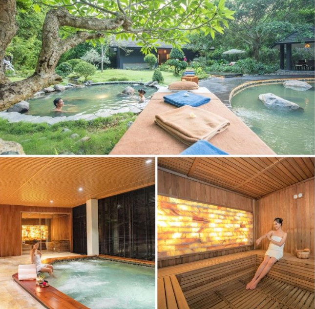 Bạn có thể tận hưởng không khí trong lành tại sân thể thao hoặc thư giãn tại khu spa với bể sục khoáng nóng, xông hơi, massage.