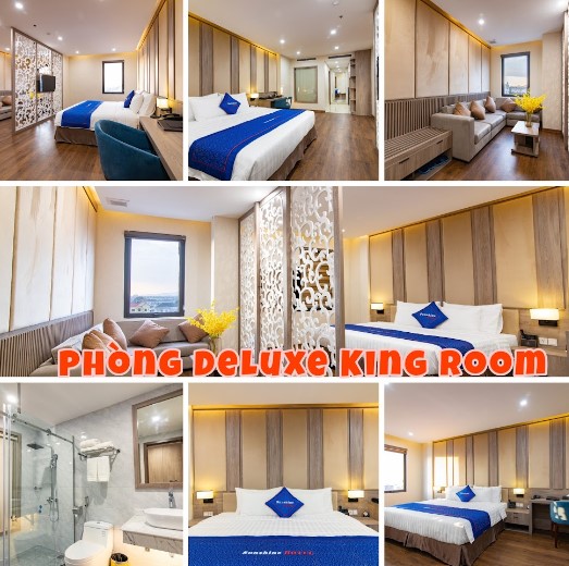Sunshine Hotel có hơn 40 phòng nghỉ, được chia làm nhiều hạng phòng khác nhau, có thể đáp ứng nhu cầu của nhiều đối tượng khách hàng. Mỗi phòng đều được thiết kế với nội thất bằng gỗ, từ sàn nhà, tủ gỗ, bàn ghế, kệ gỗ,… tạo nên một không gian sang trọng và tinh tế. Giường ngủ rộng rãi và bộ ghế sofa đặt đối diện nhau, cùng với một tấm ngăn độc đáo ở giữa, mang đến sự riêng tư và thoải mái cho du khách.