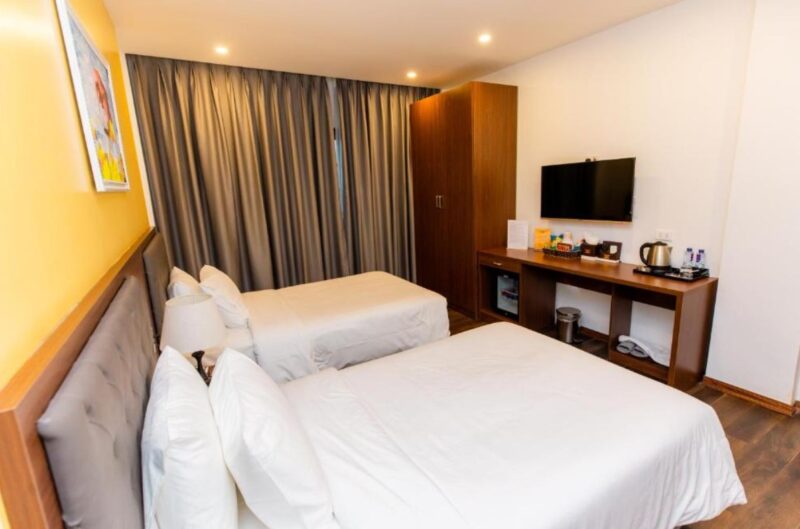 Mai Linh Hotel cung cấp các hạng phòng giường đôi và 2 giường đơn với diện tích khoảng 25m2, được trang bị đầy đủ tiện nghi như điều hòa, bình nóng lạnh, tivi, két an toàn,… đảm bảo mang đến cho du khách một không gian nghỉ dưỡng thoải mái và an toàn. Đặc biệt, mỗi phòng đều có phòng tắm riêng và ban công, cho phép du khách có thể ngắm nhìn khung cảnh thành phố sôi động và nhộn nhịp. Homestay Móng Cái này thực sự là một lựa chọn lý tưởng cho những ai đang tìm kiếm một không gian nghỉ dưỡng sang trọng, tiện nghi và giá cả hợp lý.