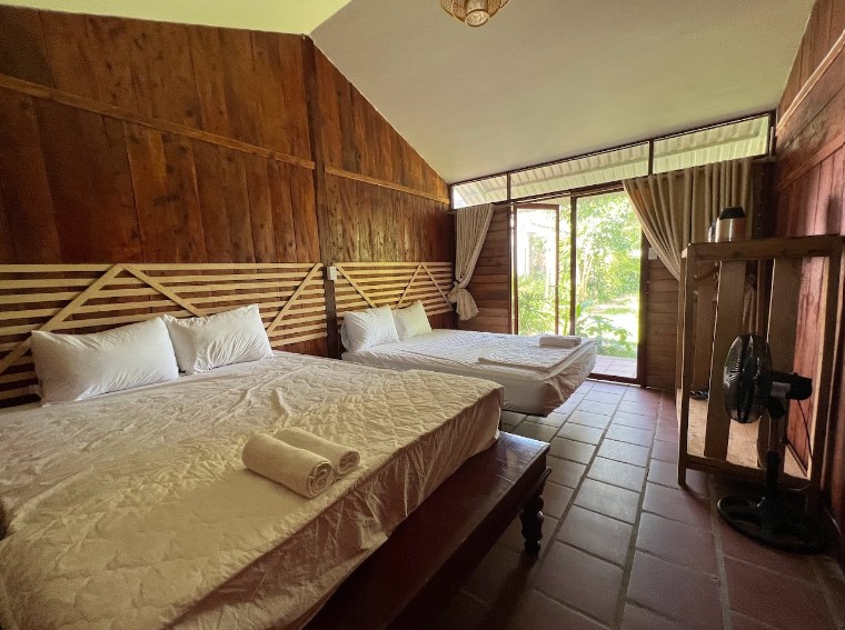 Mekong Family Nam Giang có không gian thoáng đãng, với hệ thống phòng ốc được thiết kế hiện đại, tinh tế. Mỗi phòng đều được trang bị đầy đủ tiện nghi như tivi, máy lạnh, tủ quần áo, wifi,… đảm bảo mang đến cho bạn sự thoải mái và tiện lợi nhất.