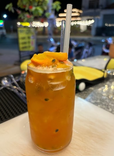 Trà đào cam sả, một thức uống quen thuộc và được nhiều người yêu thích, luôn là lựa chọn hàng đầu tại quán. Vào mùa hè, bạn có thể thưởng thức trà đá mát lạnh, còn mùa đông thì nhâm nhi một tách trà ấm nóng, xua tan cái lạnh.