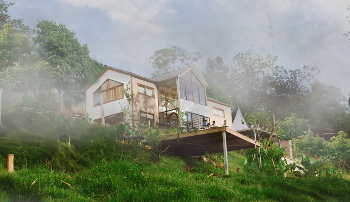 Nằm trên một ngọn đồi, Micasa được bao quanh bởi những trảng cỏ xanh mướt, không gian thoáng đãng, trong lành.